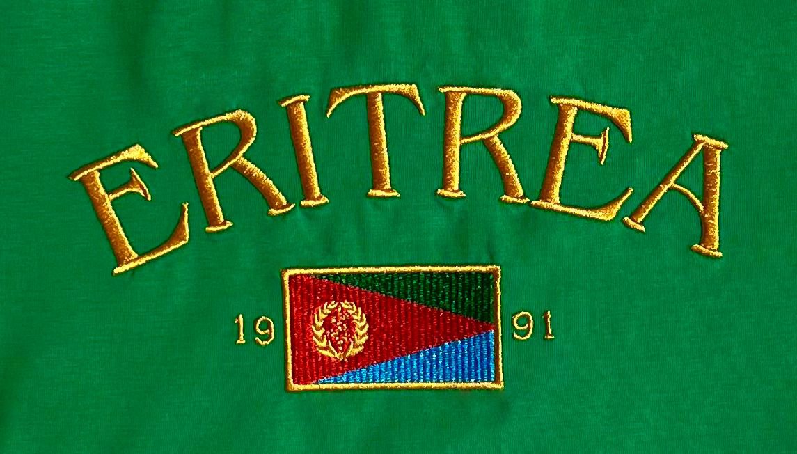 Détails brodés : "ERITREA", "1991" et le drapeau érythréen