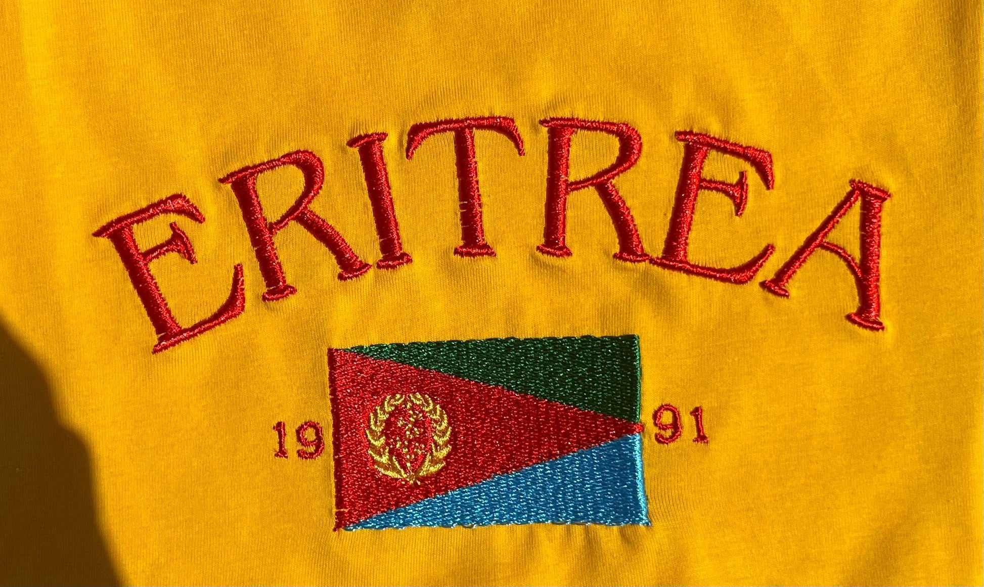 Détails brodés : "ERITREA", "1991" et le drapeau érythréen